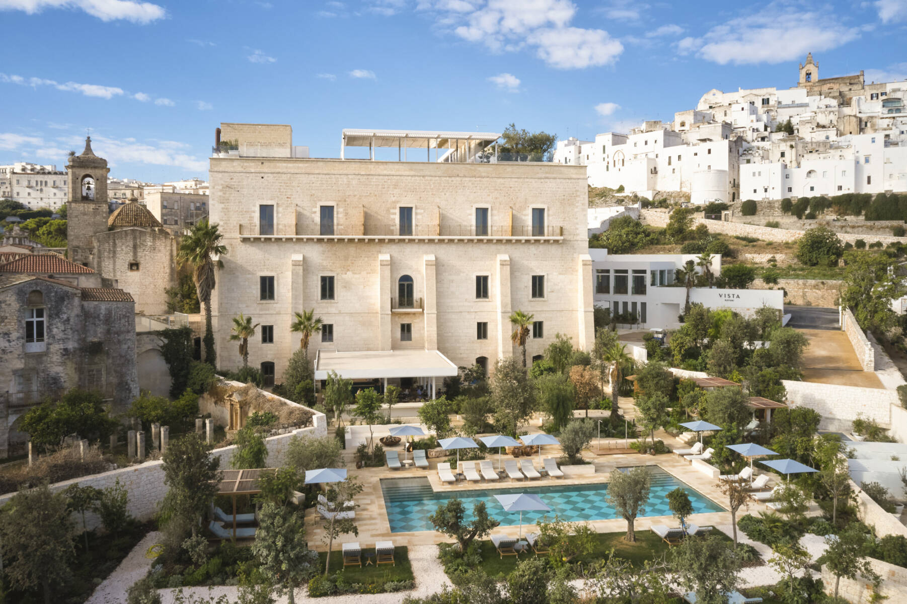 Maestoso e semplice, l’edificio dell’ex Manifattura Tabacchi, attuale Vista Ostuni se ne sta lì, un po’ come fosse a guardia della Città Bianca, un po’ a dare il benvenuto a chi arriva. È lì da così tanto tempo, che se ne è perso il conto. Ha cambiato destinazione tante volte ma sempre con una vocazione di accoglienza: è stato convento e ospedale, ricovero per i più deboli e soli, grandi e piccini, povere fanciulle sfortunate. Fino a diventare Manifattura Tabacchi negli anni '20. Ha visto passare il tempo, cambiare modi e costumi. Ma è rimasto uguale a se stesso, solido e vigile. Ed ora, restaurato ma in modo conservativo e rispettoso è tornato ad essere un simbolo della città di Ostuni e ancora una volta un emblema di accoglienza, ma un’accoglienza nuova: quella di un 'ospitalità di lusso gentile e sostenibile.